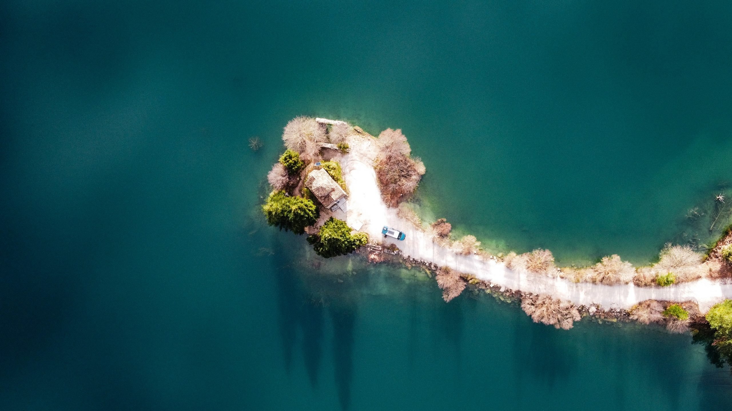 Aangezien het hier verlaten is parkeren we Fred pontificaal voor de kerk die we via een landtong kunnen bereiken. We zetten onze tafel en stoelen buiten en genieten van we een heerlijk ontbijt. Ondertussen hebben we een videoafspraak met een geboren Albanees die ons graag meer vertelt over Albanië en wat we hier kunnen verwachten. Hij woont zelf inmiddels in Nederland maar zijn familie woont nog wel in Albanië en hij laat ons direct kennis maken met de Albanese gastvrijheid. We krijgen de contactgegevens van zijn zus in Tirana en worden volgeladen met tips voor dit voor ons nog steeds onbekende en mysterieuze land.