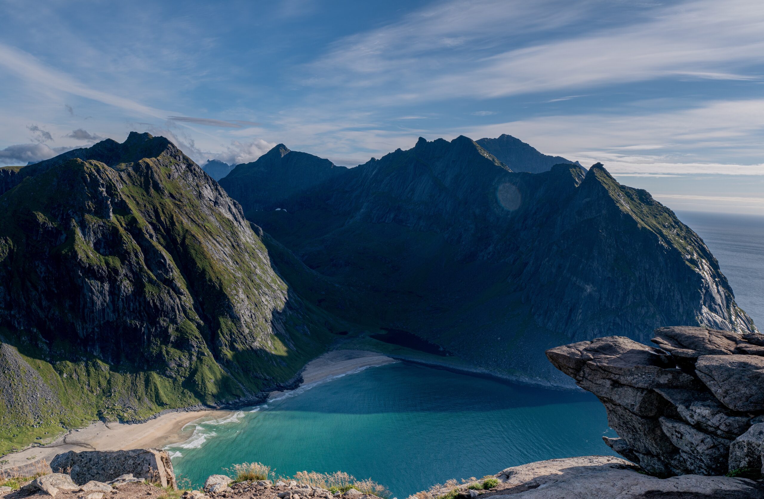 Nee, zowel de Ryten berg als het Kvalvika strand liggen in een National Park, waardoor het hier verboden is om met de drone te vliegen.